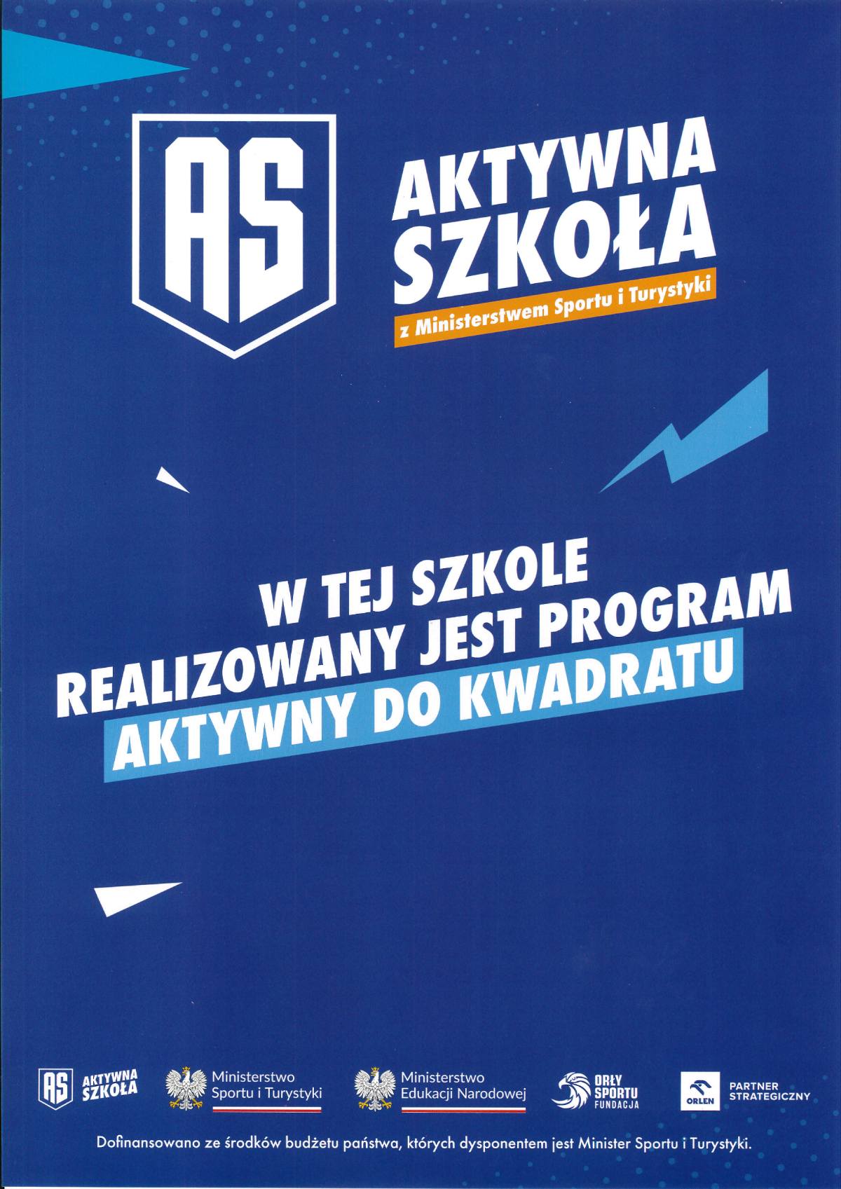 „Aktywny do Kwadratu" to zadanie realizowane w ramach Programu Aktywna Szkoła, prowadzonego przez Ministerstwo Sportu i Turystyki. Jego celem jest zapewnienie uczniom dodatkowych, pozalekcyjnych zajęć sportowych, aby promować aktywność fizyczną i zdrowy styl życia.Zajęcia odbywają się w dwóch grupach klasy 1-3 i 4 - 8. Na zajęciach uczniowie rozwijają swoje pasje i zainteresowania, wzmacniają sprawność fizyczną, budują zdrowe nawyki. Podczas spotkań kładzie się nacisk na różnorodne formy ruchu, dobrą zabawę, integrację oraz pozytywne doświadczenia związane ze sportem.