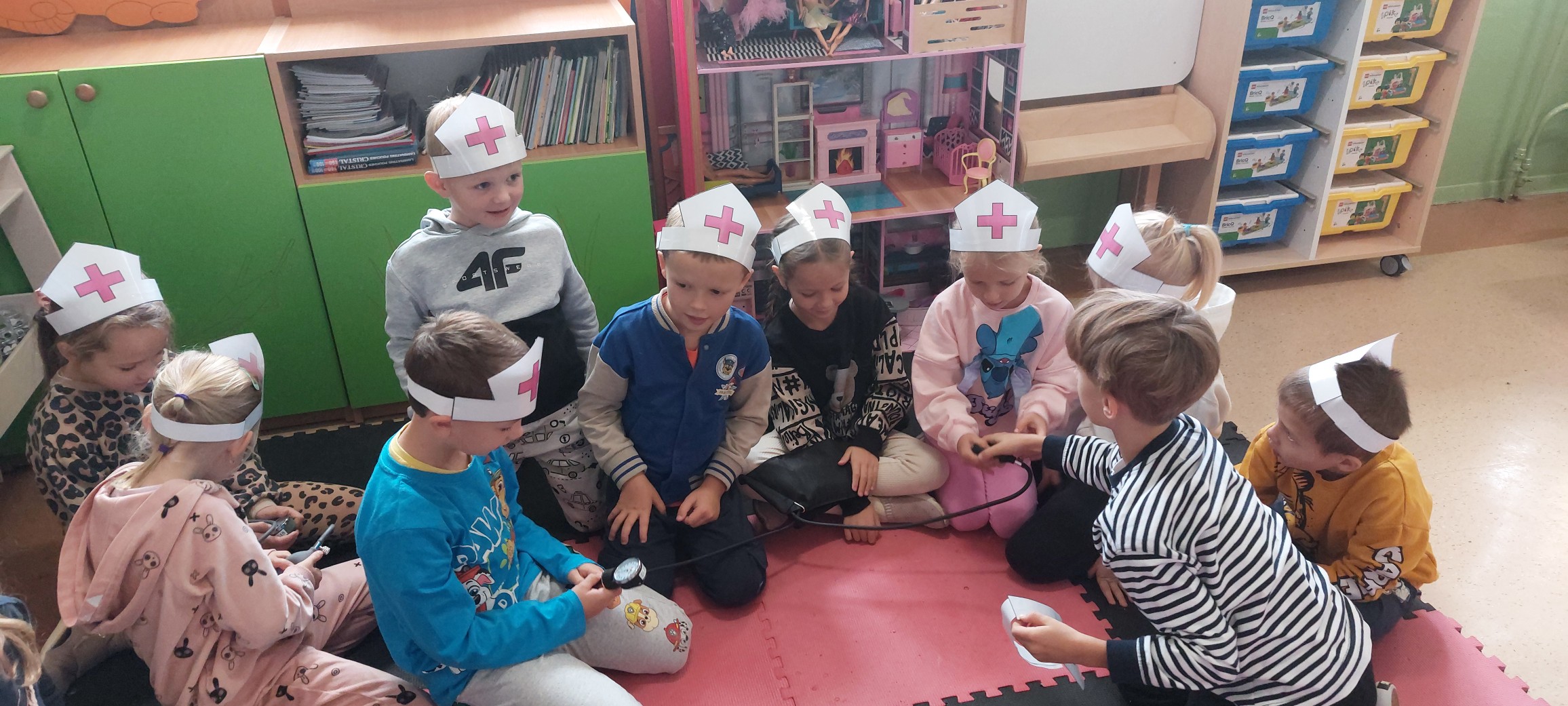 Dziś w naszym przedszkolu odbyło się bardzo ciekawe spotkanie z panią pielęgniarką. Dzieci dowiedziały się, na czym polega jej praca i jak ważna jest rola pielęgniarki w dbaniu o zdrowie ludzi. Przedszkolaki obejrzały krótki film edukacyjny, z którego mogły się dowiedzieć, w jaki sposób pielęgniarka pomaga chorym, jak udziela pierwszej pomocy i dlaczego tak ważne jest przestrzeganie zasad higieny.Po filmie pani pielęgniarka pokazała dzieciom swój sprzęt i pozwoliła im zobaczyć, jak mierzy się ciśnienie oraz temperaturę. Najodważniejsi mogli sami sprawdzić, jak działa ciśnieniomierz i termometr. Spotkanie wzbudziło duże zainteresowanie i wiele pytań – okazało się, że w grupie mamy nawet kilku przyszłych lekarzy i pielęgniarki!