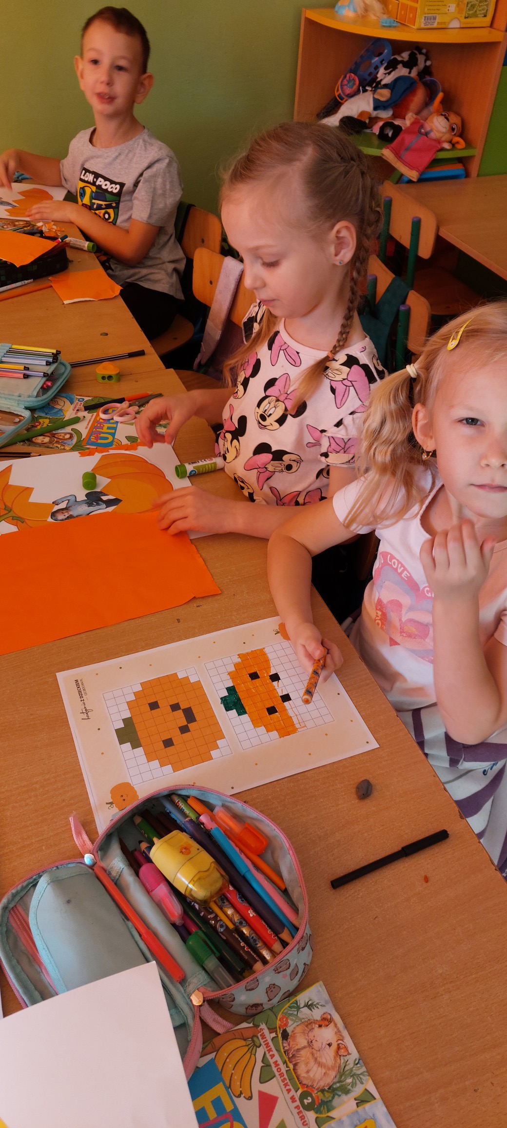 W naszym oddziale przedszkolnym zrobiło się naprawdę pomarańczowo! 31 października Obchodziliśmy Dzień Dyni – święto uśmiechu, zabawy i kreatywności.Dzieci brały udział w rozmaitych konkurencjach i zabawach, wśród których największym hitem okazała się gra w dyniowe bingo – emocje sięgały zenitu, a okrzyki radości słychać było w całym korytarzu.