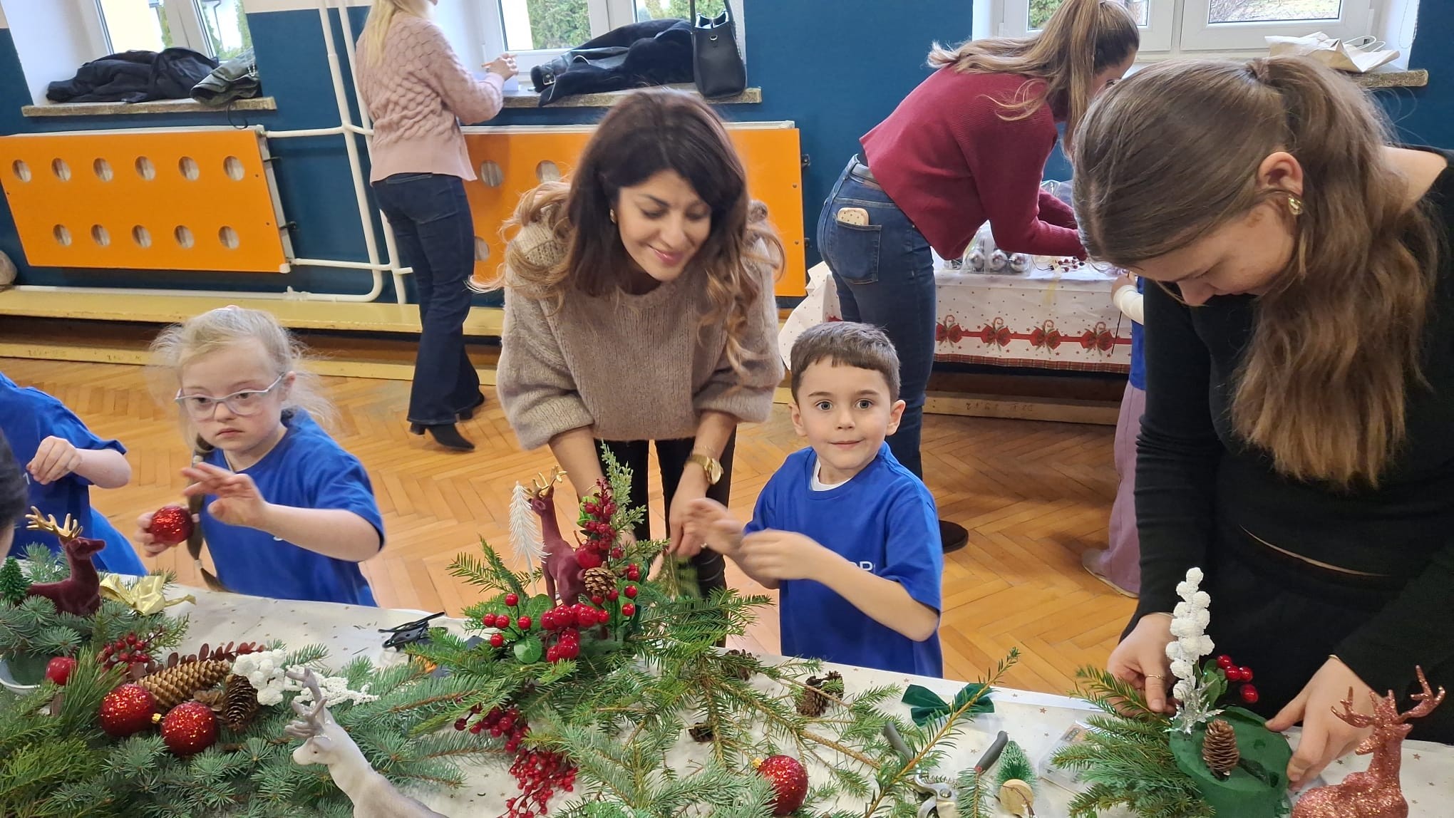 , podczas których mali artyści wspólnie ze swoimi dorosłymi pomocnikami tworzyli świąteczne stroiki
