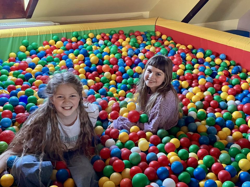 . Następnie uczniowie mogli skorzystać z przygotowanych atrakcji — bawili się w basenach z kolorowymi piłkami