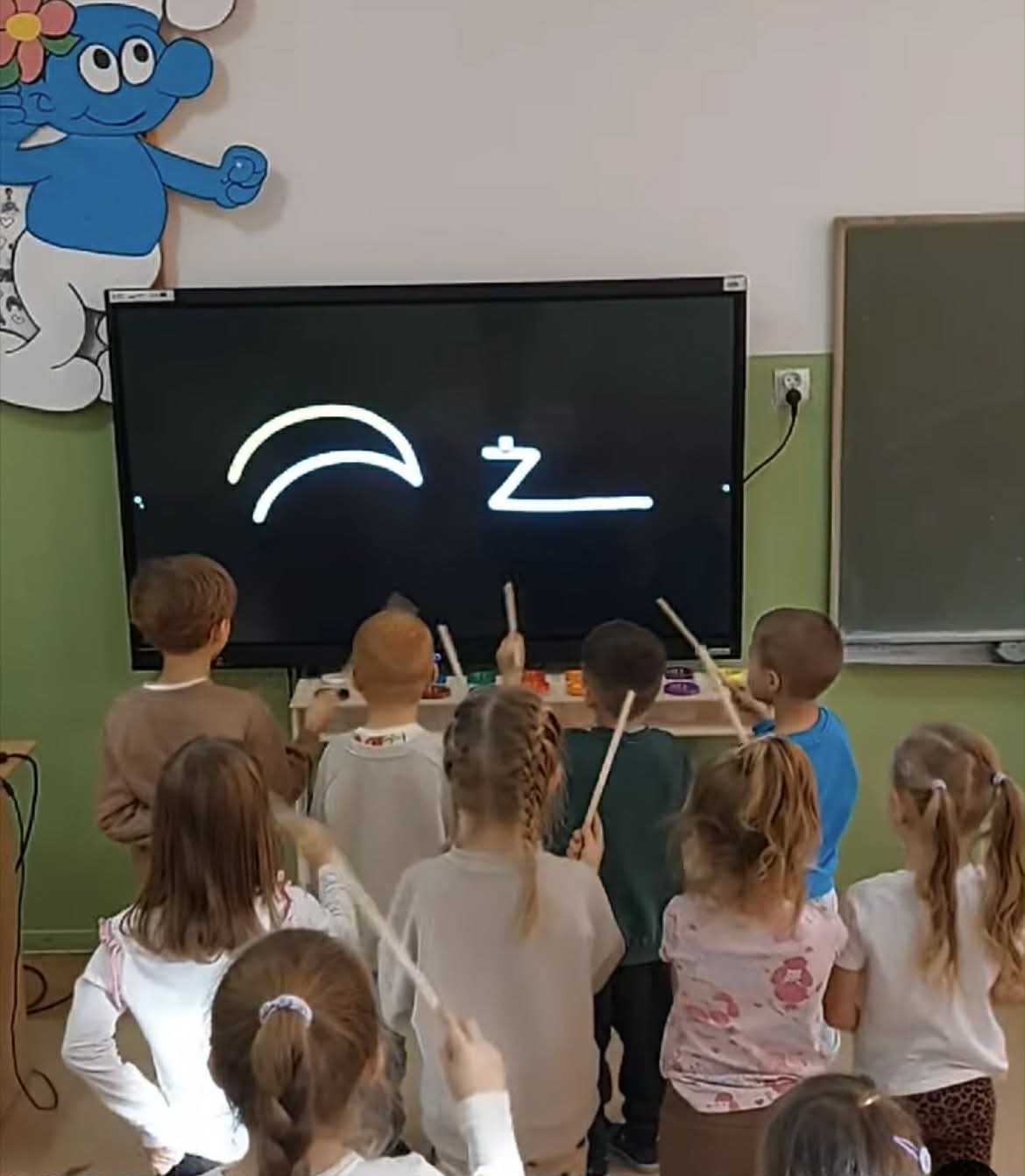 Zajęcia przebiegły aktywnie. Uczniowie ćwiczyli poczucie rytmu oraz współpracę w grupie, reagując na tempo i dynamikę muzyki. Wspólne działania sprzyjały koncentracji i integracji zespołu.