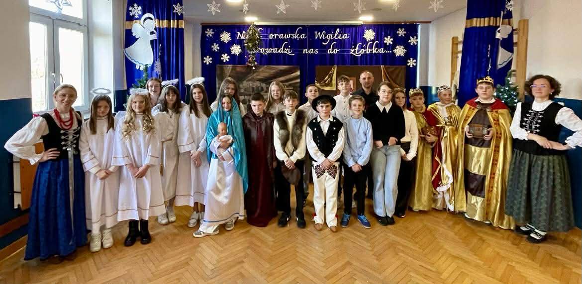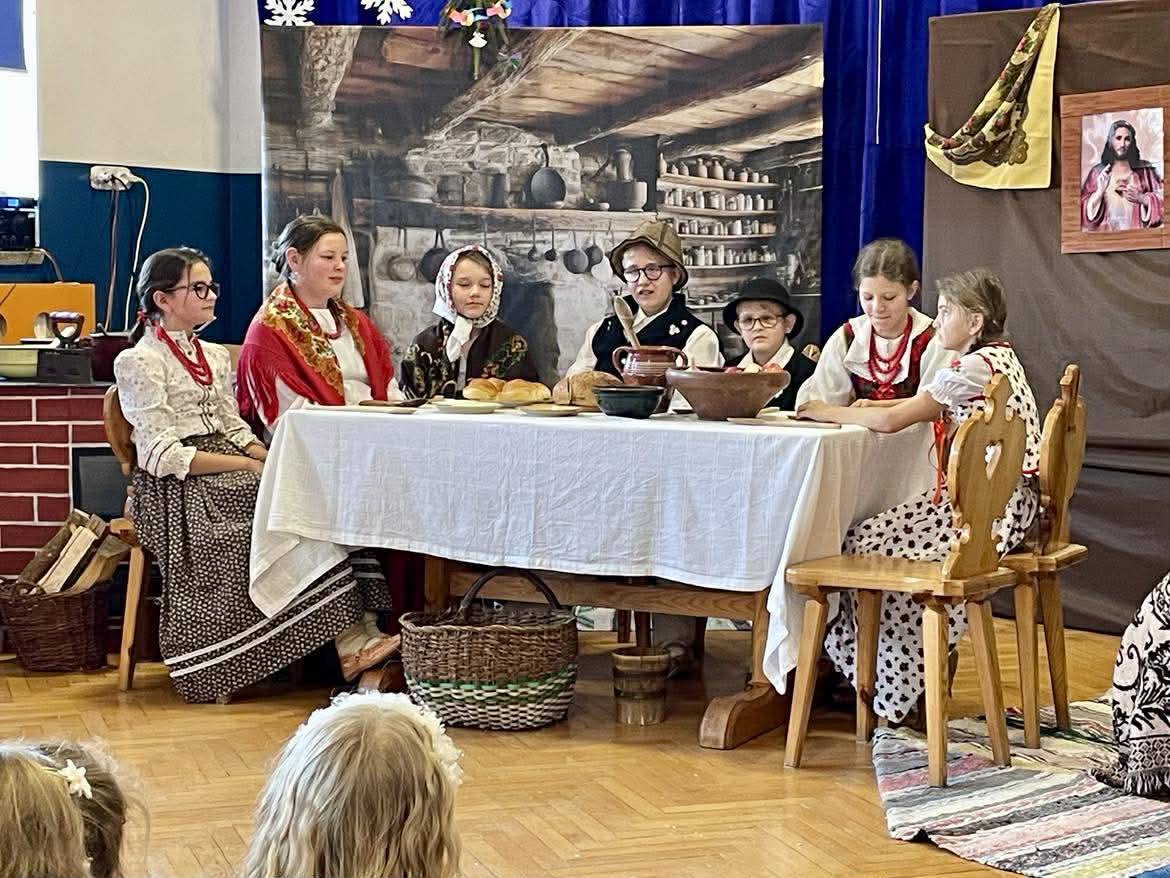 Następnie przenieśliśmy się do starej orawskiej chaty, gdzie szkolne kółko teatralne zaprezentowało inscenizację „Wilijo". Dzięki tej pięknej i autentycznej scenie mogliśmy poznać dawne zwyczaje i tradycje orawskie związane z obchodami Wigilii – pełne symboliki, rodzinnego ciepła i szacunku do tradycji przekazywanych z pokolenia na pokolenie.
