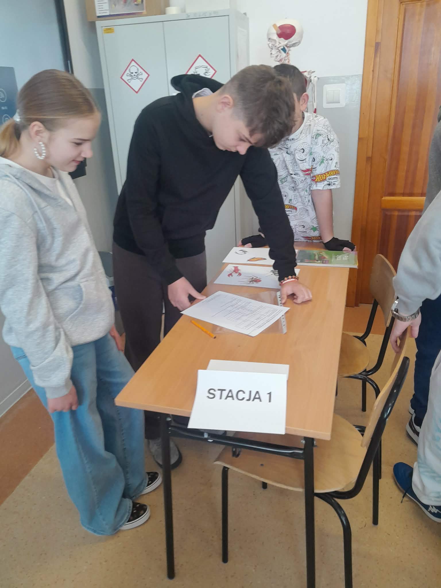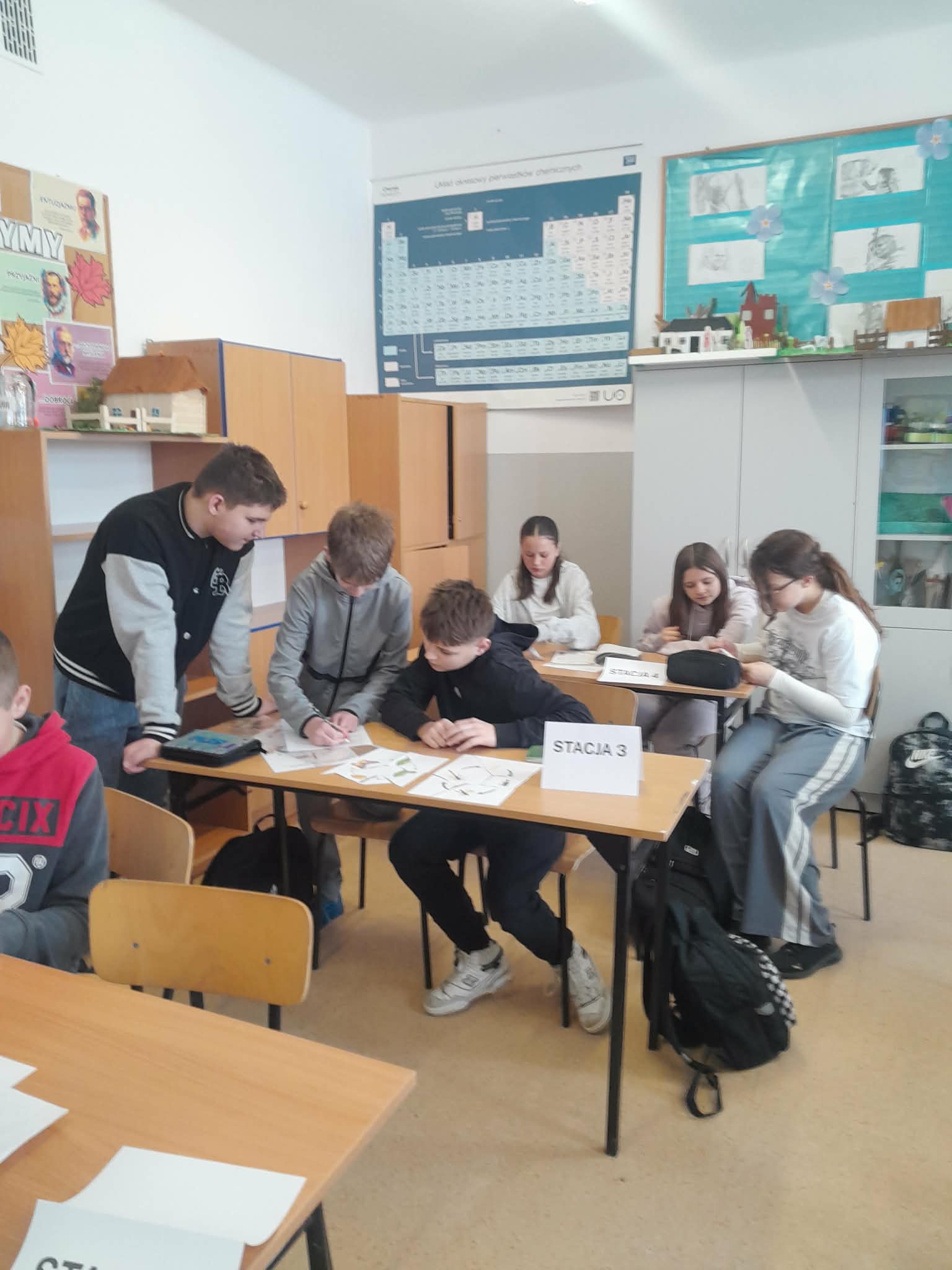 Podczas lekcji powtórzeniowej z biologii uczniowie klasy 6 utrwalali wiadomości o stawonogach i mięczakach w nieco inny sposób niż zwykle Zamiast tradycyjnej pracy z podręcznikiem, pracowaliśmy metodą stacji zadaniowych. Uczniowie w grupach przemieszczali się między stanowiskami, rozwiązując różnorodne zadania: