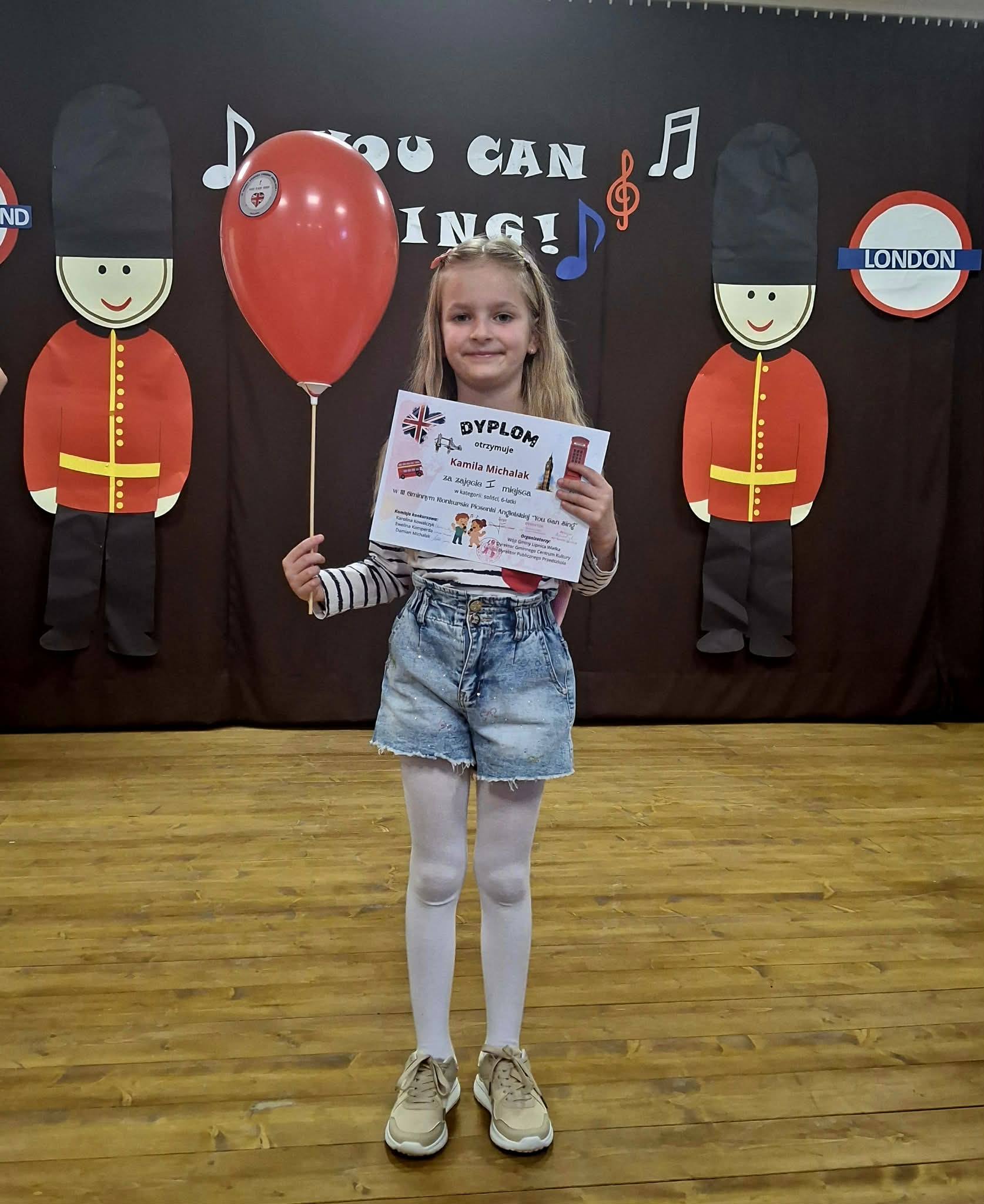 Kamila z oddzia艂u przedszkolnego jako jedyna zg艂osi艂a si臋 do udzia艂u w III Gminnym Konkursie Piosenki Angielskiej 鈥瀁ou Can Sing". Z ogromn膮 odwag膮 stan臋艂a na scenie, pi臋knie zaprezentowa艂a swoj膮 piosenk臋 i... zdoby艂aI miejsce!