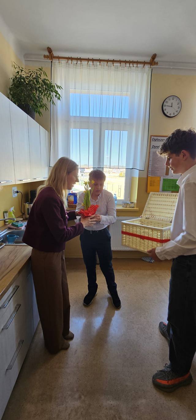 Od samego rana na korytarzach unosi się zapach tulipanów i słychać serdeczne życzenia.