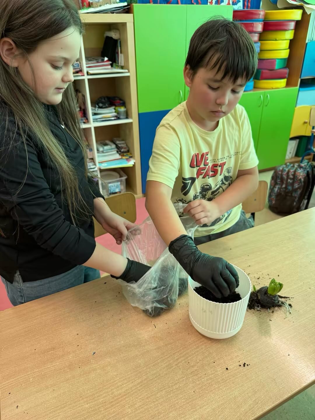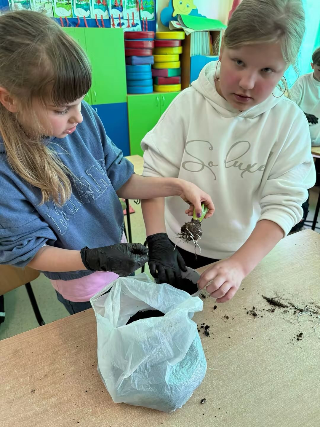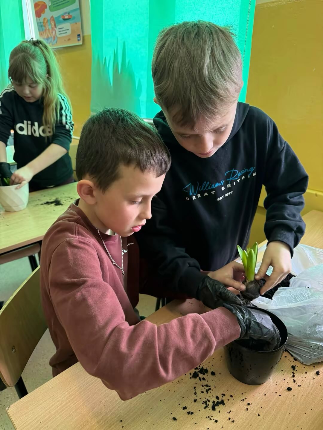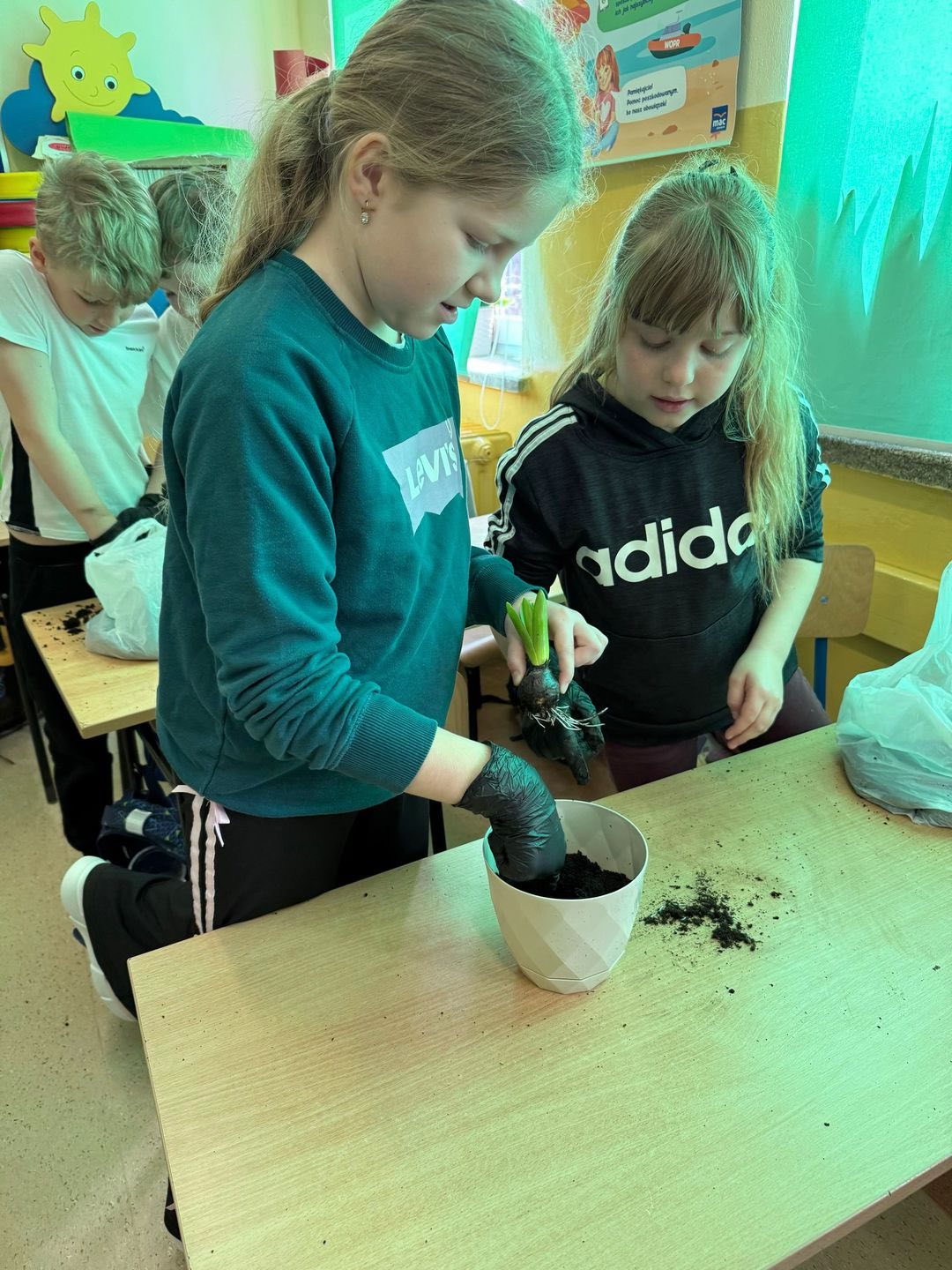 Uczniowie w grupach samodzielnie przygotowali podłoże do wybranych roślin i je zasadzili. Teraz będą systematycznie je podlewać oraz obserwować ich wzrost i rozwój.