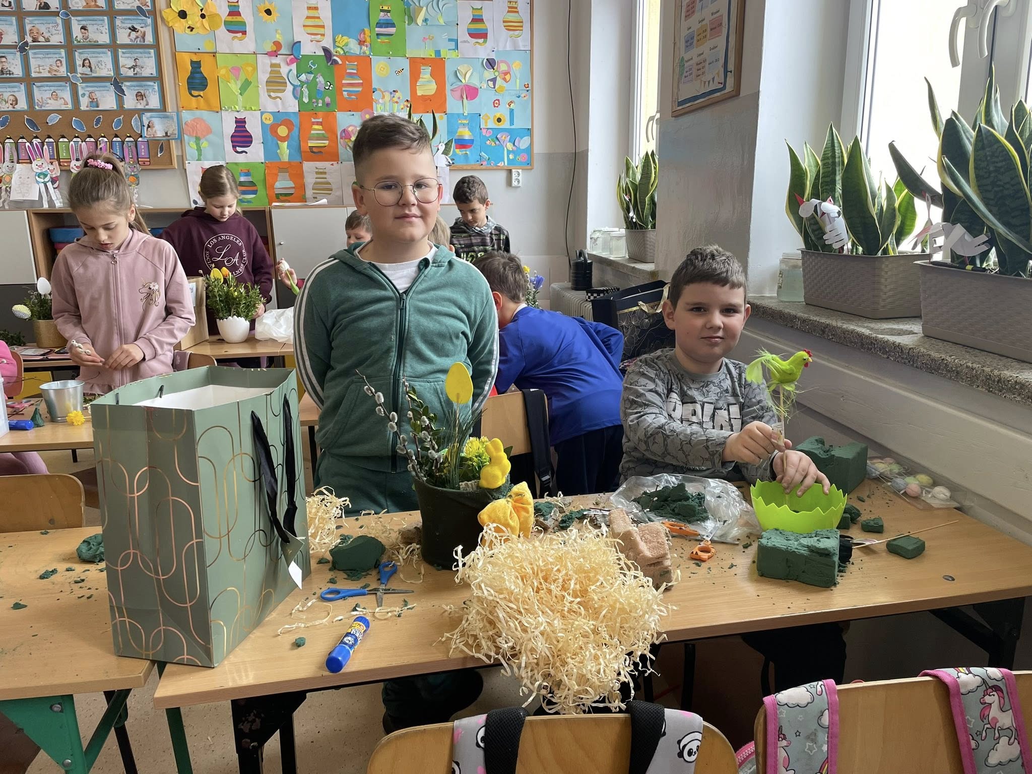 W okresie przygotowań do Świąt Wielkanocnych uczniowie klasy 2 wzięli udział w wyjątkowych zajęciach plastyczno-technicznych, podczas których zamienili się w prawdziwych florystów