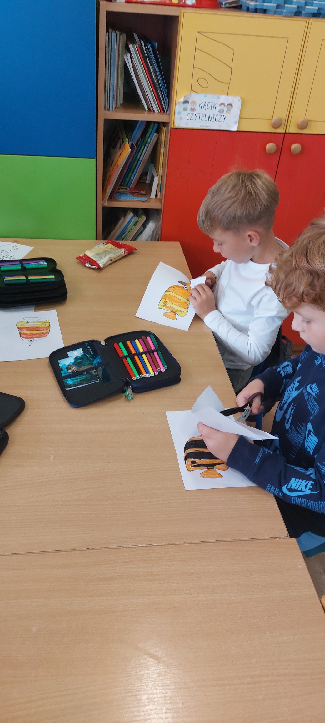 Podczas kolejnych spotkań przedszkolaki wspólnie wykonały duże akwarium – pełne rybek, glonów i bąbelków, wszystko powstało z papieru i materiałów plastycznych. Praca zespołowa okazała się świetną zabawą i pokazała, że razem można stworzyć coś naprawdę pięknego.