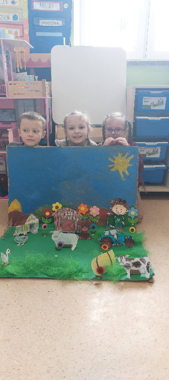 Dzieci tworzyły makiety farmy. Powstały zagrody, pola, stodoły i zwierzęta. Rozmawialiśmy o pracy rolnika, o tym, skąd biorą się produkty spożywcze i jak wygląda codzienne życie na wsi.