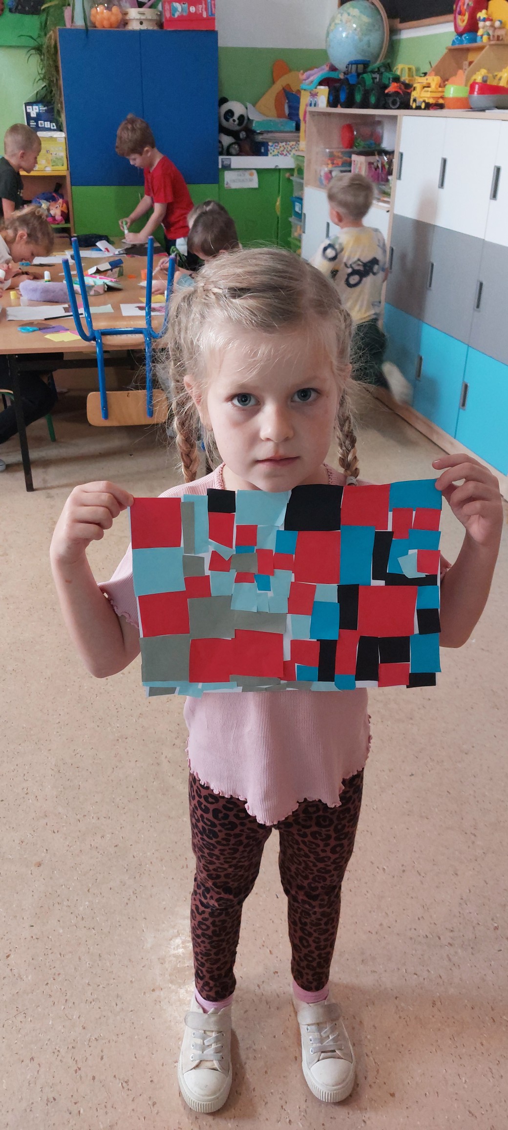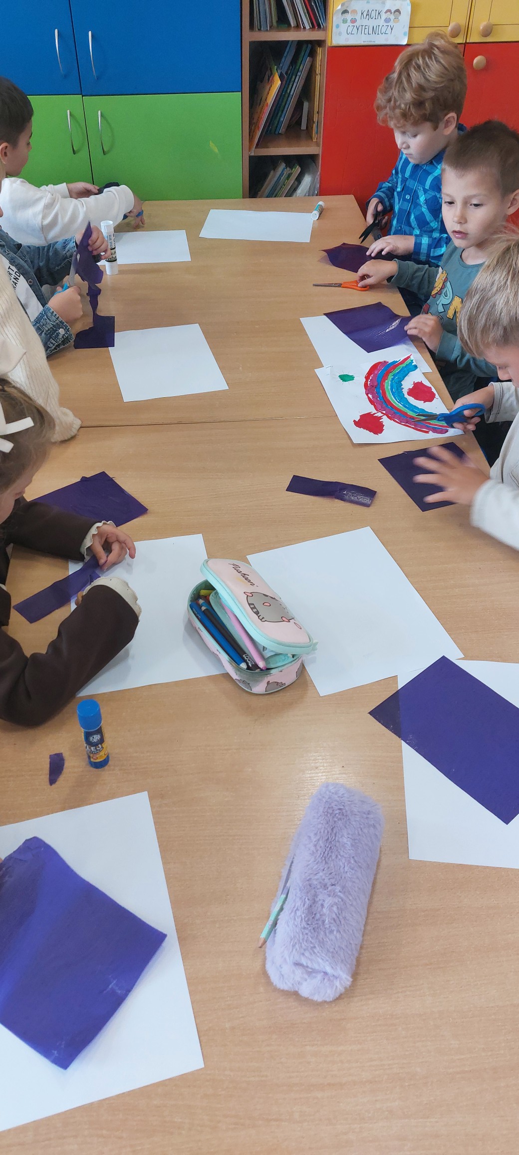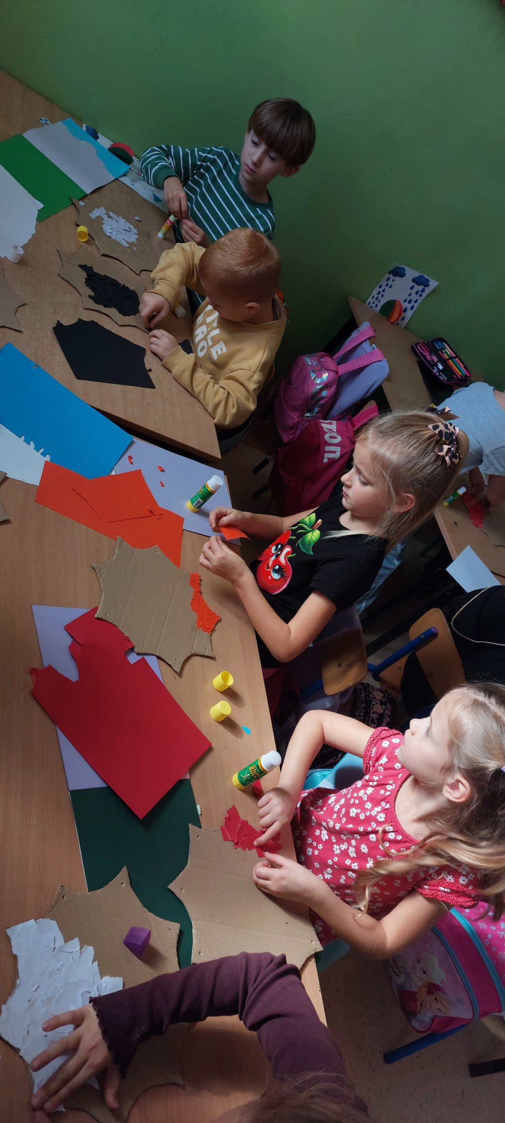 Podczas kolejnych spotkań przedszkolaki wspólnie wykonały duże akwarium – pełne rybek, glonów i bąbelków, wszystko powstało z papieru i materiałów plastycznych. Praca zespołowa okazała się świetną zabawą i pokazała, że razem można stworzyć coś naprawdę pięknego.
