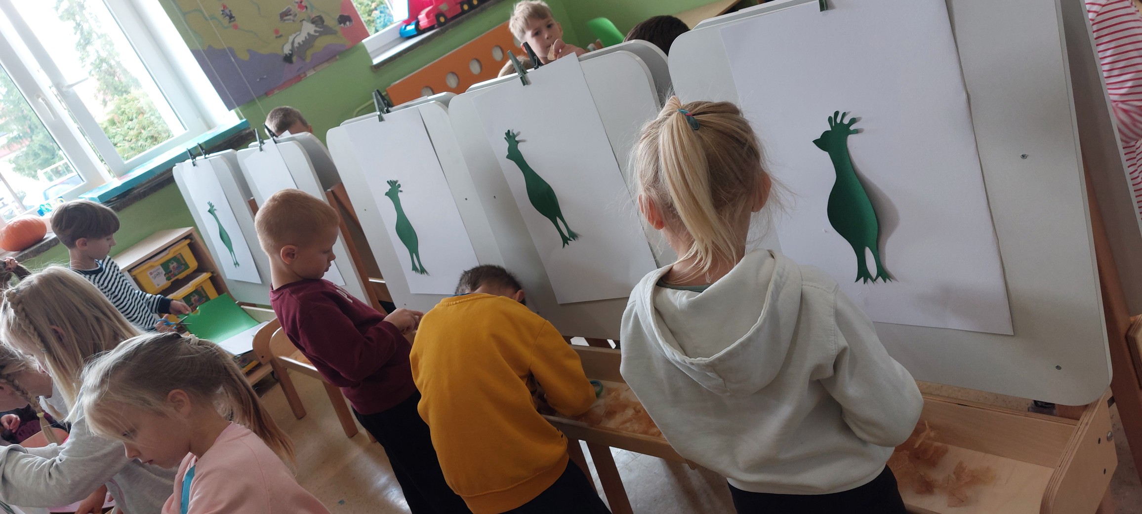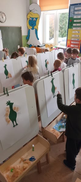 W ramach projektu: "Nowa jakość edukacji przedszkolnej w Gmina Lipnica Wielka na Orawie" dzieci miały okazję spróbować różnych technik i poczuć się jak prawdziwi artyści. Po raz pierwszy pracowały na sztalugach, tworząc przepięknego pawia z przygotowanych przez siebie elementów. Kolorowe piórka, papierowe ozdoby i błyszczące detale sprawiły, że każda praca była wyjątkowa i pełna fantazji.