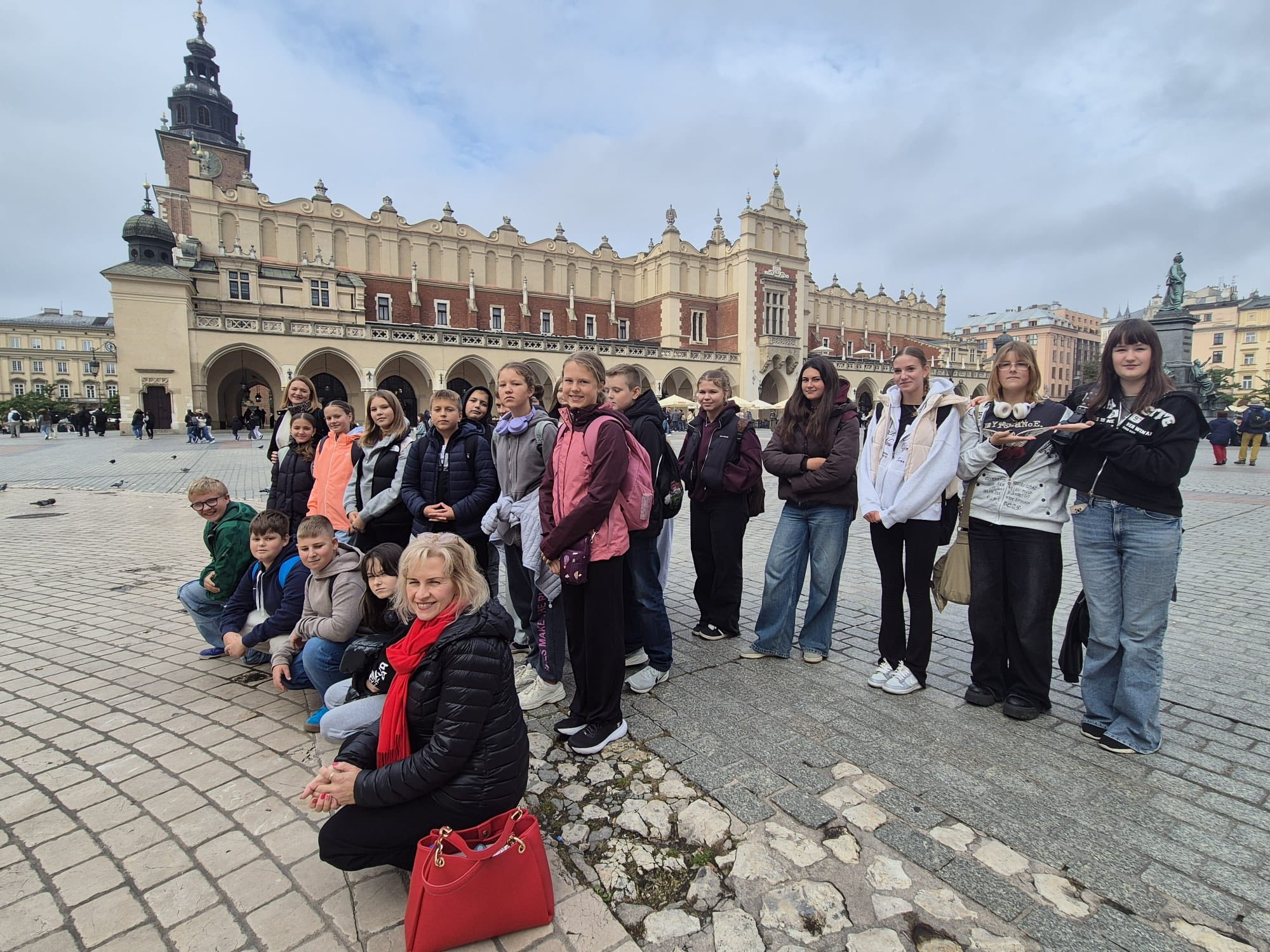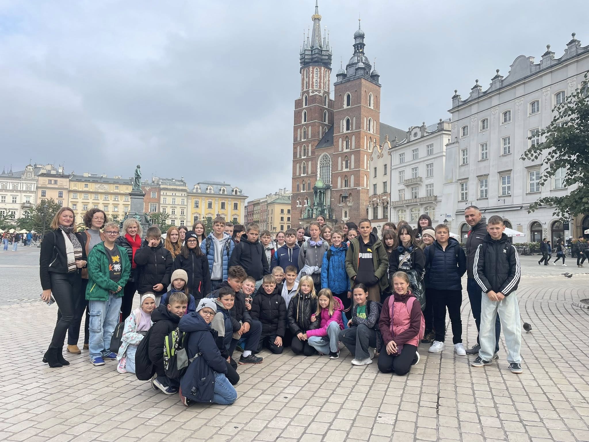 Następnie, wraz z naszą panią przewodnik, udaliśmy się na spacer po krakowskim Rynku. Poznaliśmy wiele ciekawostek o Kościele Mariackim, Lajkoniku i innych symbolach Krakowa. Każdy krok po historycznym centrum miasta to była prawdziwa lekcja historii w terenie!
