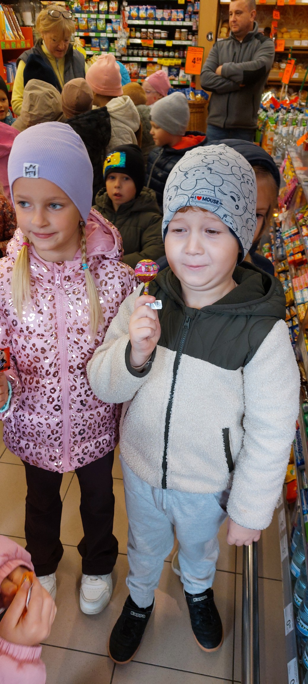 Na zakończenie naszej wizyty w sklepie dzieci otrzymały lizaki – za co serdecznie dziękujemy pracownikom sklepu za miłe przyjęcie i słodką niespodziankę!