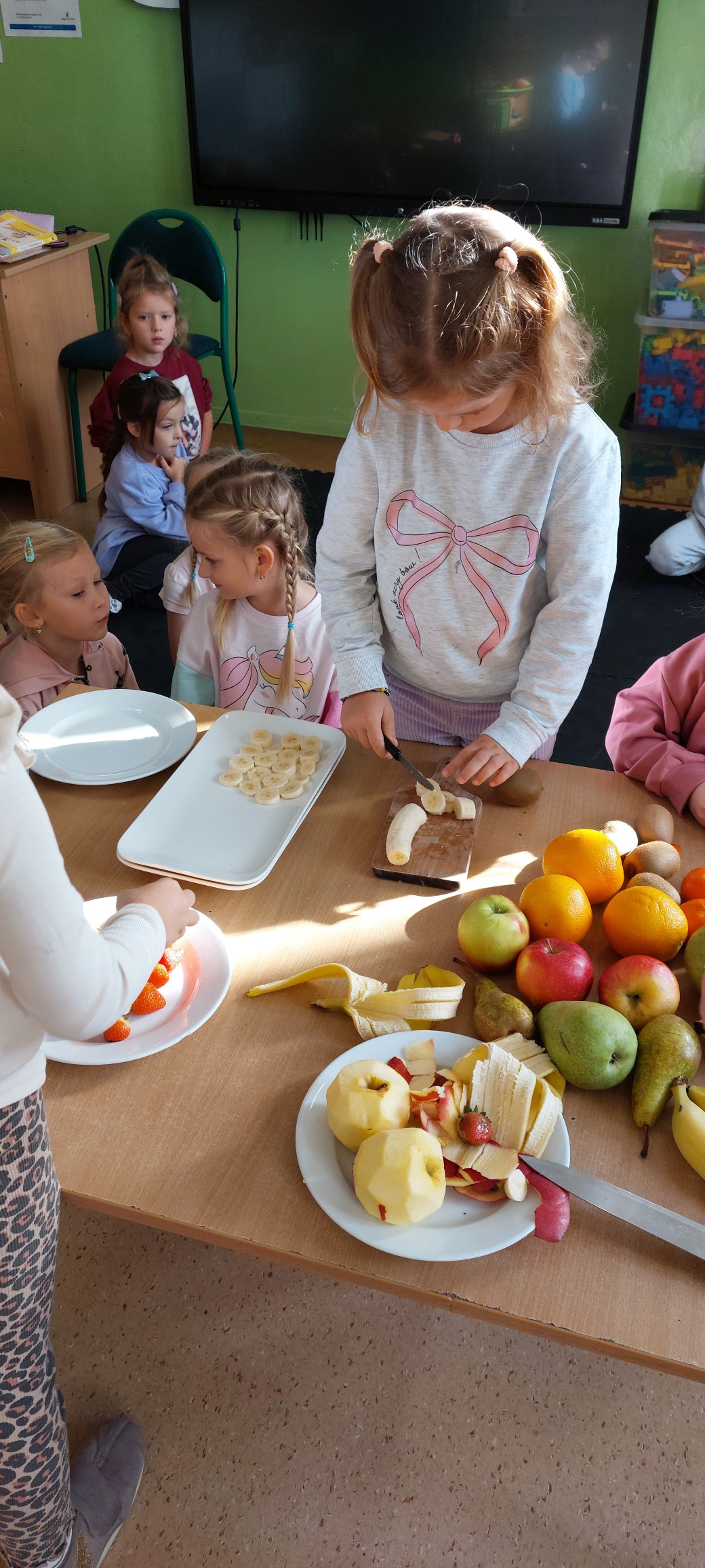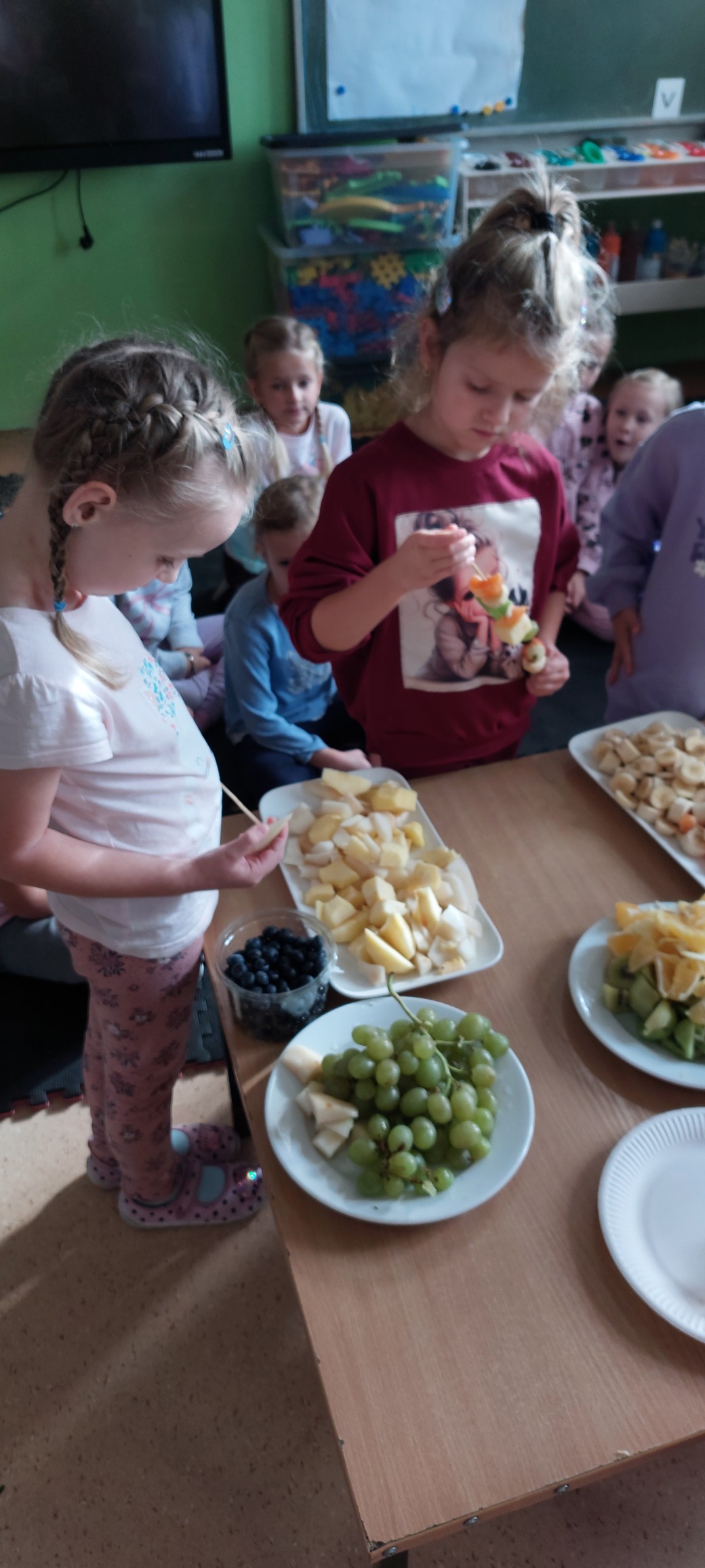 W tym tygodniu dzieci rozmawiały o zdrowiu i odpowiednim odżywianiu. Dowiedziały się, jak ważne jest jedzenie warzyw i owoców, a także picie wody zamiast słodkich napojów.Wybrały się nawet do sklepu, gdzie samodzielnie wybierały zdrowe produkty, a potem przygotowały pyszne szaszłyki z owoców– kolorowe, smaczne i pełne witamin!