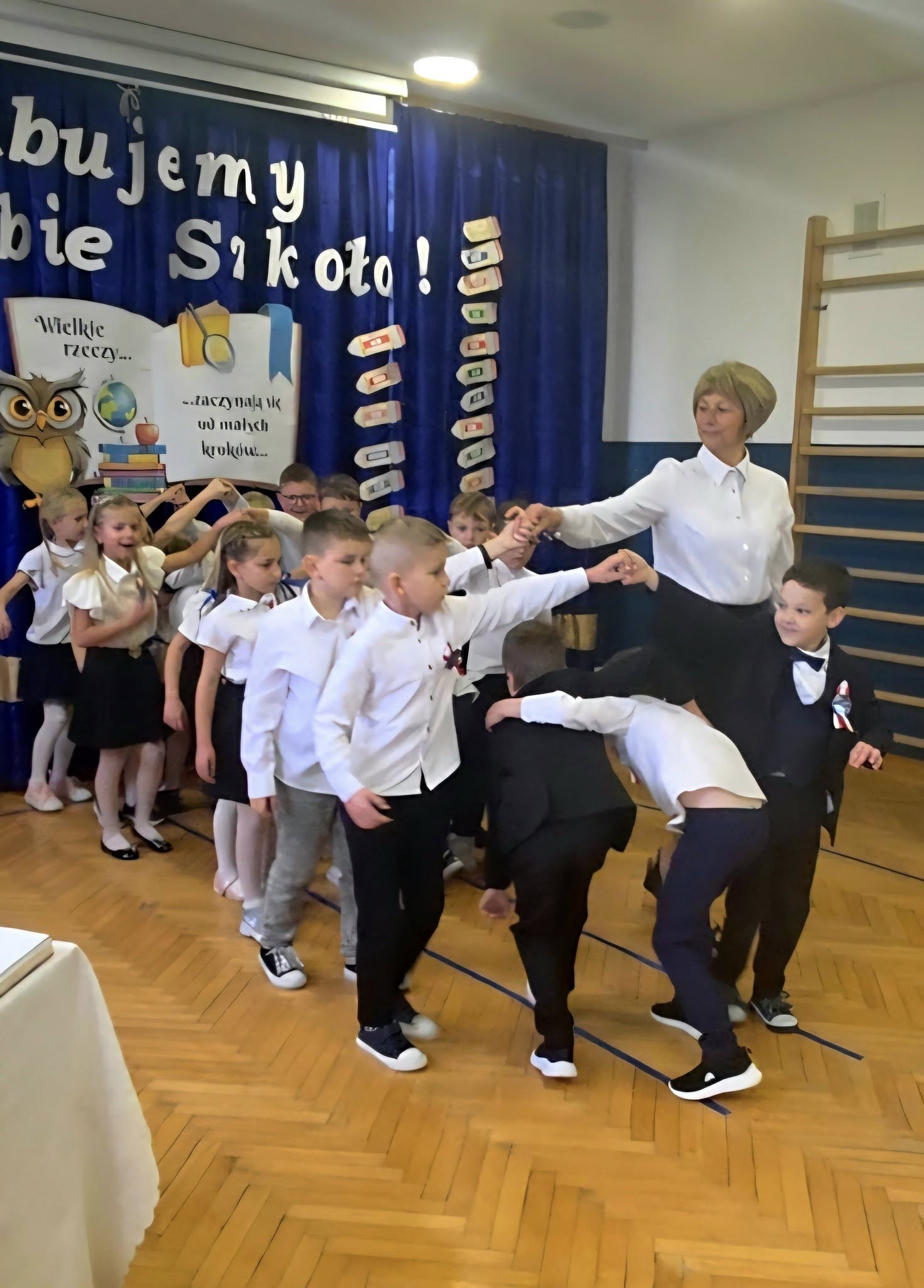 Uroczystość rozpoczęła się dostojnym polonezem, który mali uczniowie zatańczyli z wielką elegancją i radością
