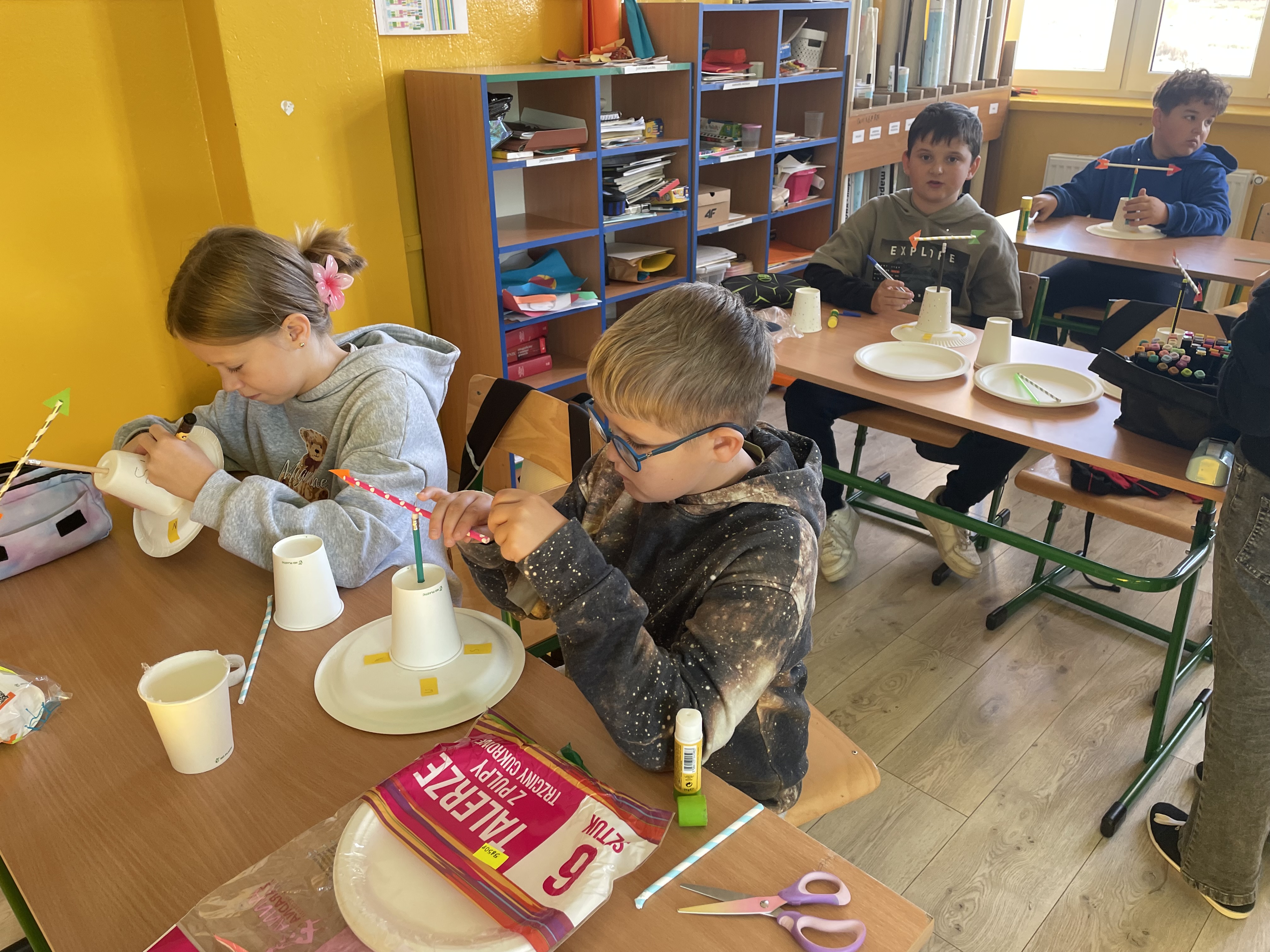 To jednak nie wszystko! Uczniowie własnoręcznie wykonali wiatrowskazy, dzięki którym mogli sprawdzić, skąd wieje wiatr
