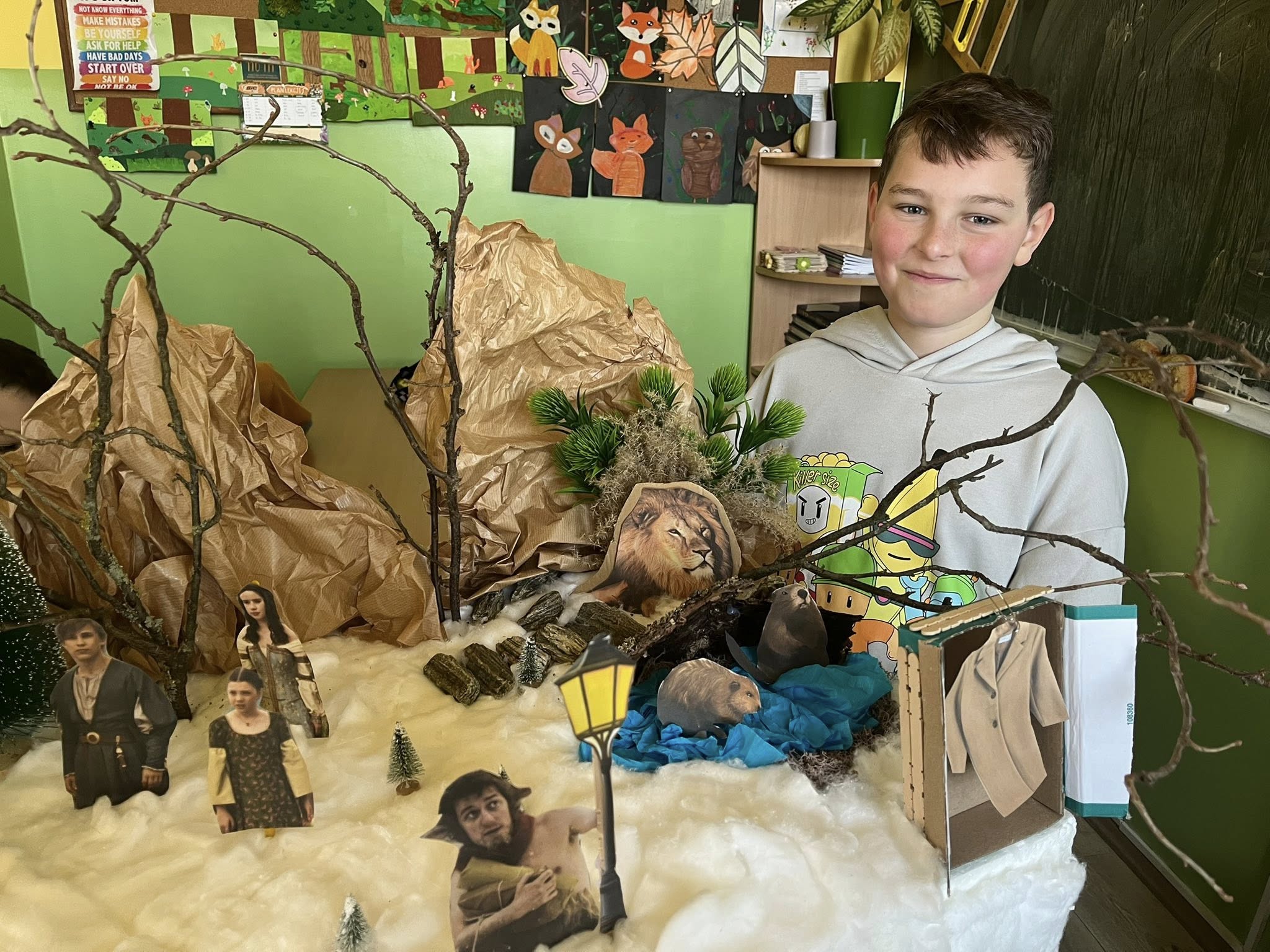 Uczniowie klasy V SP1 realizowali projekt plastyczno-literacki „Makieta Narnii", będący podsumowaniem omawiania lektury „Opowieści z Narnii. Lew, Czarownica i stara szafa" C.S. Lewisa. Celem projektu było pogłębienie rozumienia treści książki, rozwijanie kreatywności oraz współpracy w grupie.Podczas zajęć uczniowie pracowali w zespołach, projektując i wykonując trójwymiarowe makiety przedstawiające wybrane miejsca z Narnii, m.in. las zimowy