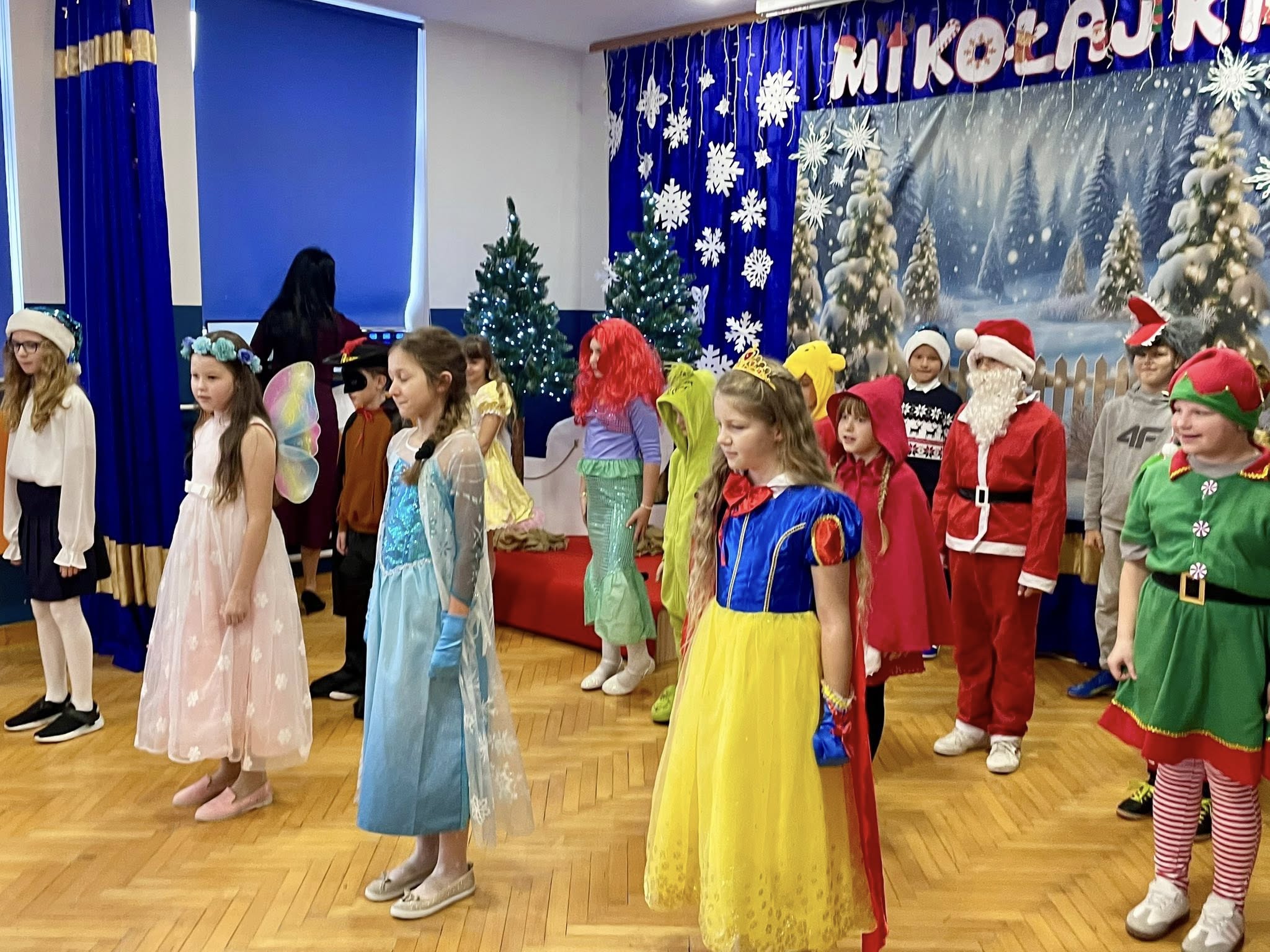 Uroczystość rozpoczęła się przedstawieniem „Mikołajki w Bajkolandii", przygotowanym przez klasę III. Widowisko zachwyciło wszystkich – pełne kolorów, pięknych strojów, energicznego tańca i świątecznej muzyki.
