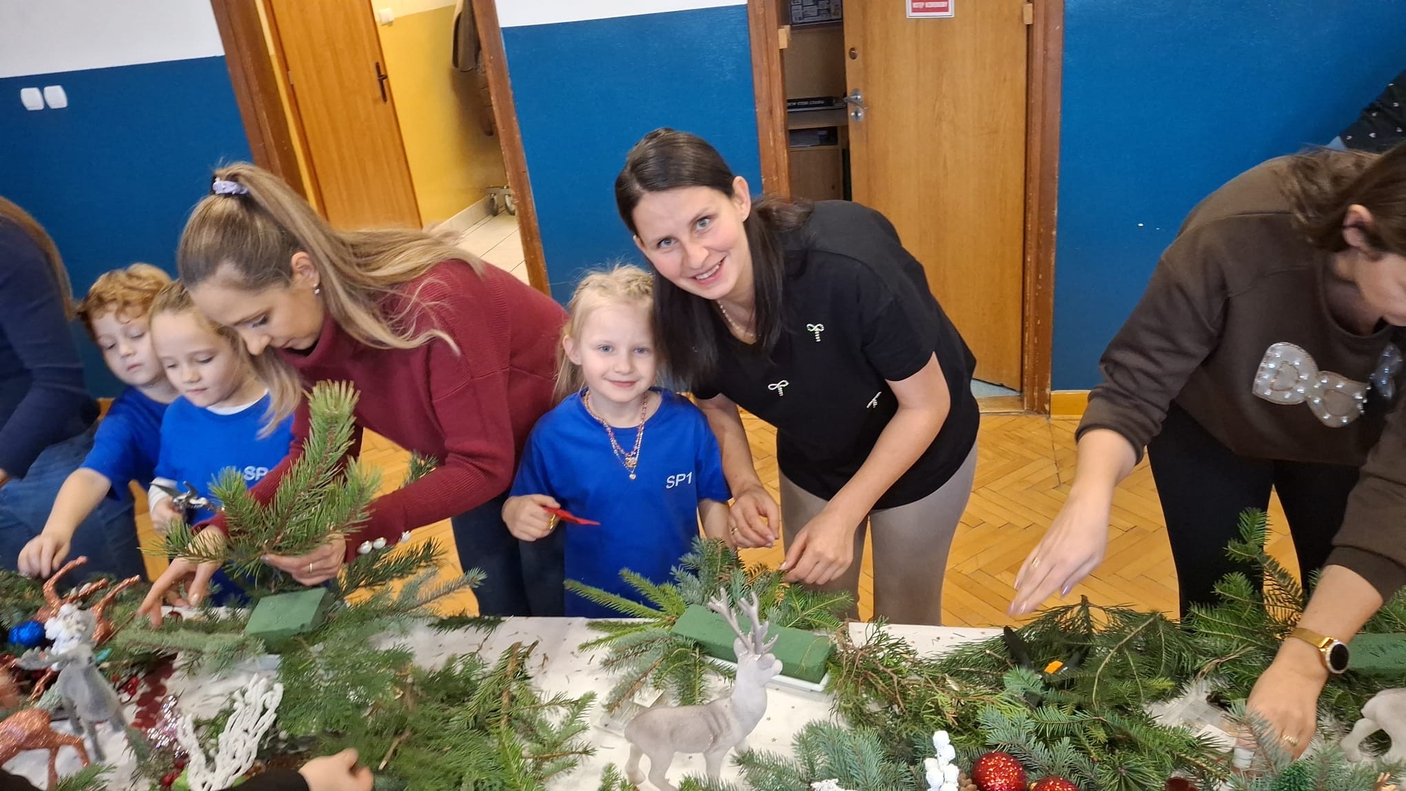 . Każdy duet działał jak zgrany zespół: rodzic – od spraw technicznych, dziecko – od nieograniczonej wyobraźni. Efekt? Cała sala pełna pachnących gałązek, błyszczących ozdób i dumy większej niż niejedna choinka