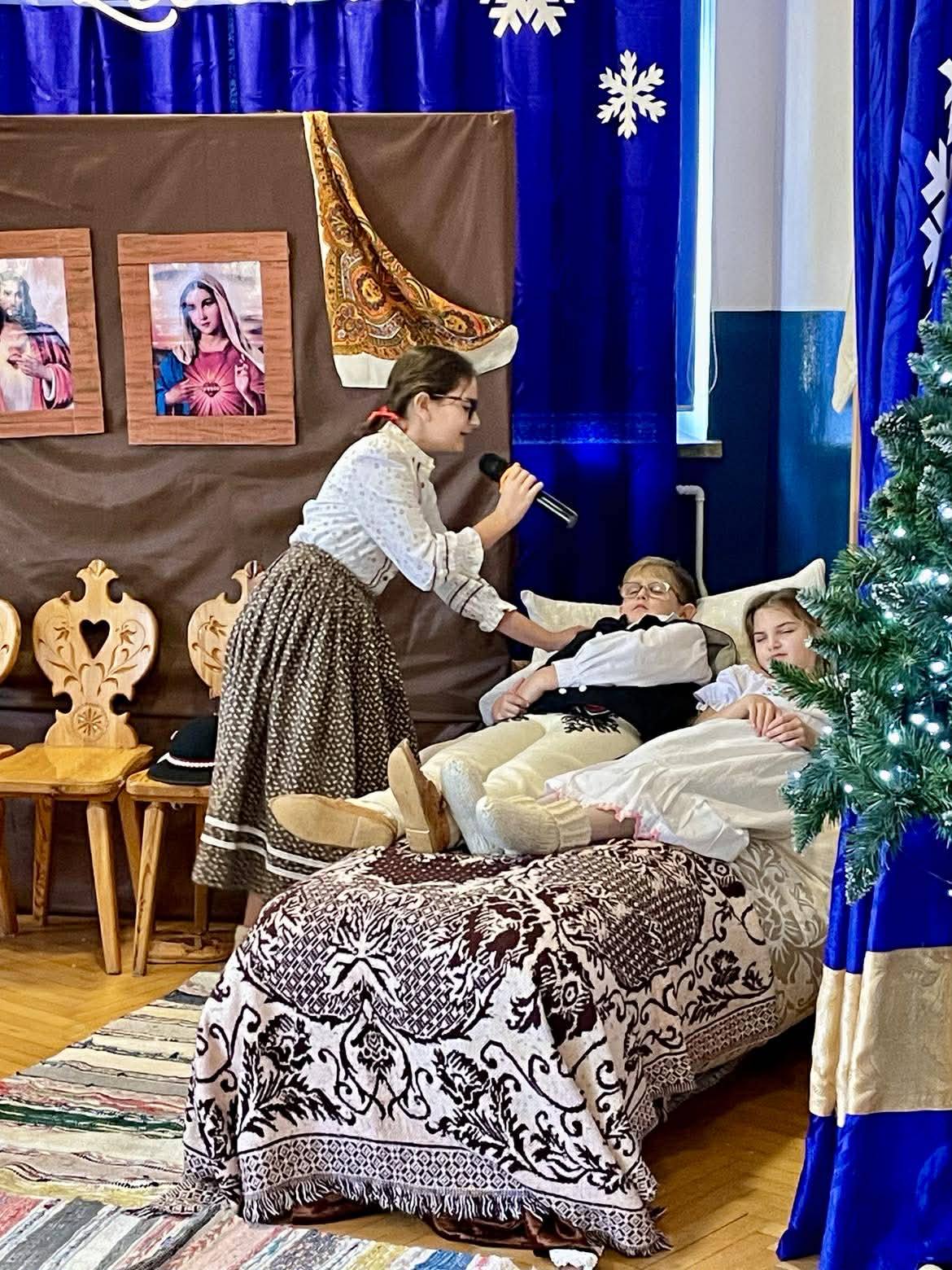 Całość została pięknie dopełniona nastrojowym śpiewem dziewczynek z klasy 4, których kolędy i pastorałki dodały przedstawieniu wyjątkowego uroku i podkreśliły świąteczny klimat tego spotkania.