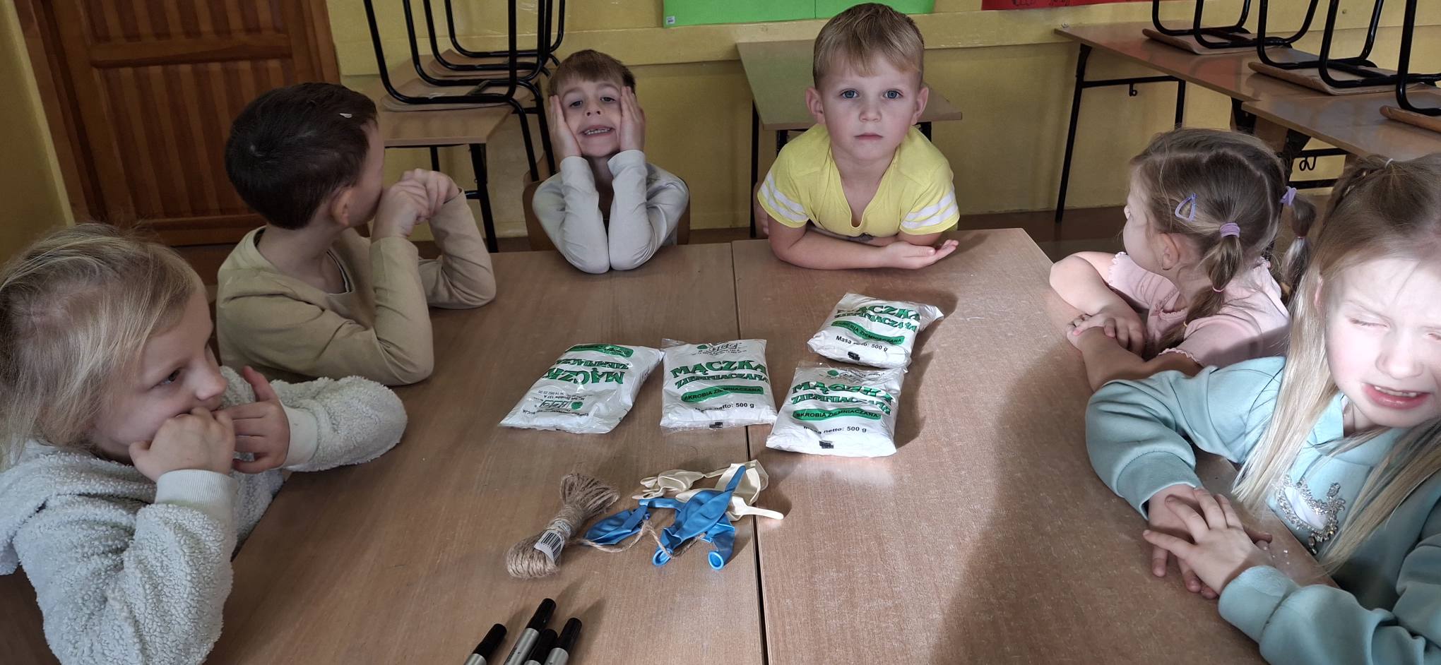Przedszkolaki wspólnie tworzyły gniotki, które nie tylko sprawiły im dużo radości, ale także pomogły w wyciszeniu i regulowaniu emocji. Dużym wyzwaniem, a jednocześnie świetną zabawą, było układanie wież z kubeczków – zadanie to wymagało komunikacji, cierpliwości oraz wzajemnej pomocy.