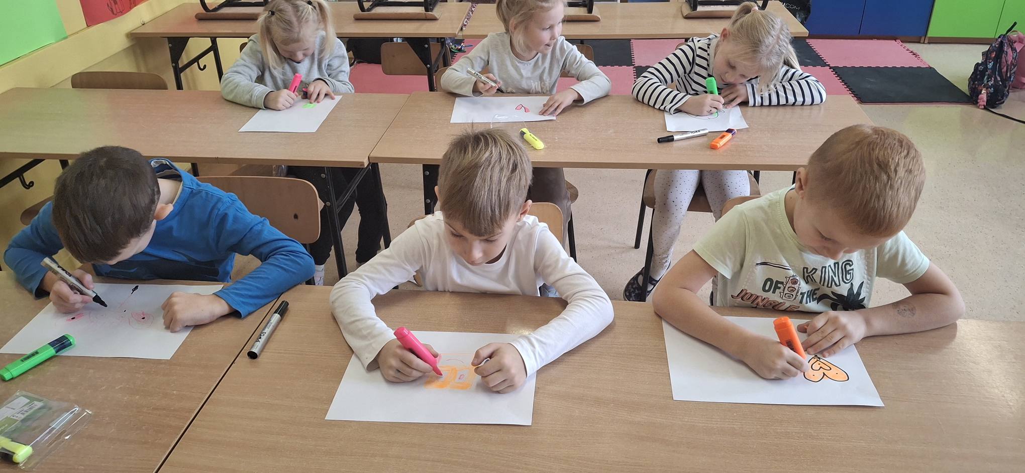 Ważnym elementem zajęć była rozmowa o uczuciach. Dzieci uczyły się rozpoznawać i nazywać emocje oraz poznawały proste sposoby radzenia sobie z trudnymi i niechcianymi emocjami, takimi jak złość czy frustracja. Poprzez ćwiczenia i zabawy dowiedziały się, jak można się uspokoić, poprosić o pomoc i wyrazić swoje emocje w bezpieczny sposób.